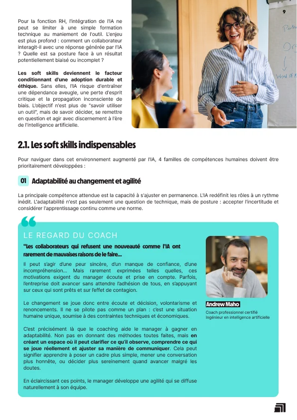 - Les soft skills indispensables à développer, que ce soit côté manager pour embarquer ses équipes ou côté collaborateur pour trouver sa place.