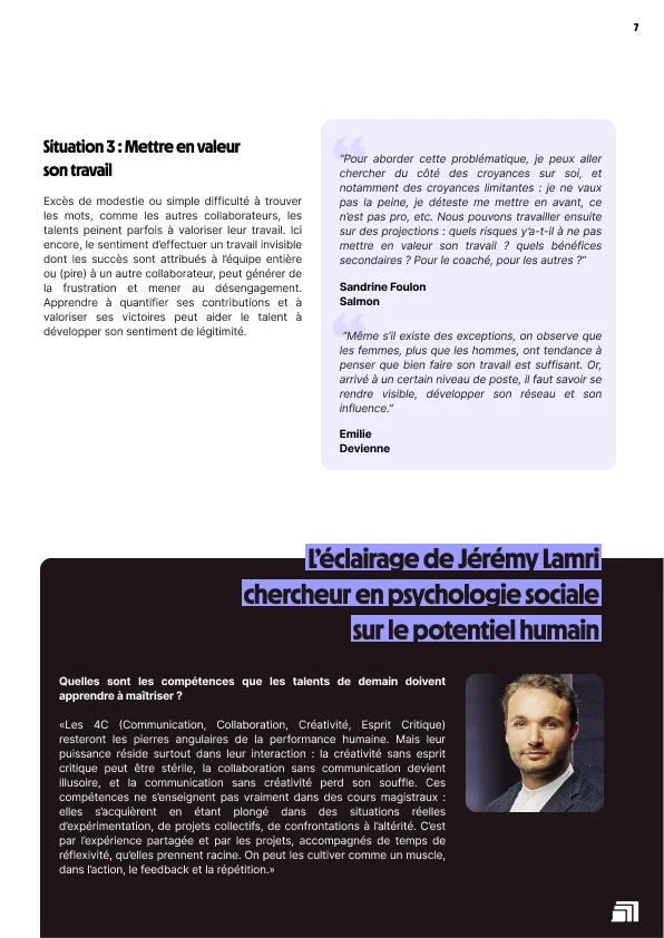 - Les 3 principaux besoins des talents pour développer leur plein potentiel